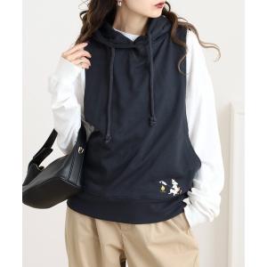 ベスト ジレ フード付きベスト たき火ネコ刺繍 レディース