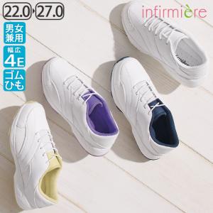 ナースシューズ 疲れにくい 白 スニーカー 厚底 レディース 看護師 介護士 靴 アンファミエ 幅広4E ストレッチスニーカー(低反発中敷付き)