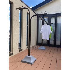 屋外 硬質アルミ製 物干し台 F型 ブラウン 茶色 (ベース石つき)2本1組 デッキ テラス 庭 竿受け 風に強い 潮風 錆びにくい おしゃれ モダン