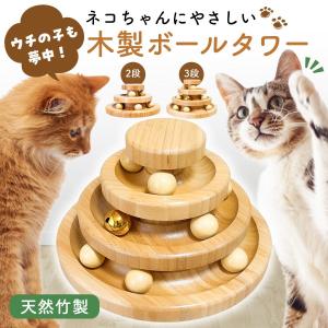 猫 おもちゃ ボール 木製 タワー 2段 3段 ネコ 一人遊び 知育 ストレス解消 グッズ ねこじゃらし ボール回転盤 鈴付き 木 竹製 留守番