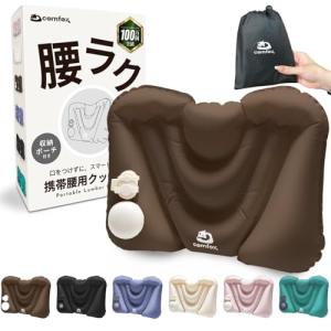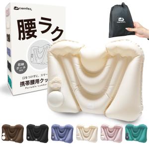 るるぶ掲載x押すと膨らむポンプ式 comfox 腰痛 クッション 携帯 腰枕 エアークッション 空気式 ポンプ式 トラベル 背もたれ 飛行機 夜
