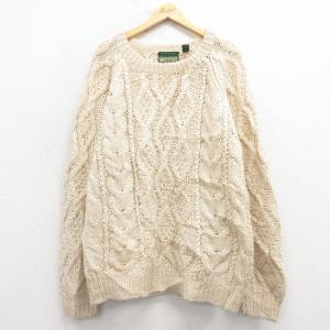 XL/古着 アメリカンイーグル 長袖 ケーブル セーター メンズ 90年代 90s 手編み 大きいサイズ ウール 薄ベージュ spe 25dec25