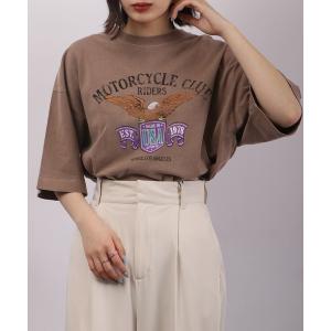 tシャツ spiritoso ピグメントアメリカンイーグルロゴTシャツ レディース