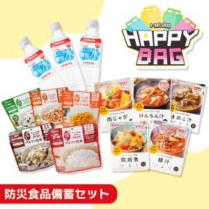 \ハッピーバッグ/ 非常食 5年 水 防災食 アルファ化米 保存食 非常食セット 7日分 災害用食品 保存水 500ml 24本 長期保存水 備蓄 アイリスオーヤマ *