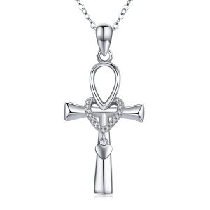 【並行輸入品】アンククロスペンダントネックレス 925スターリングシルバーネックレス ジュエリーギフト レディース ガールズ 18+2インチチェ