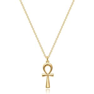 【並行輸入品】Dremmy Studios 上品なゴールドアンククロスネックレス 18K金張り シンプルな祈り 平和のための祈り アンククロスペンダン