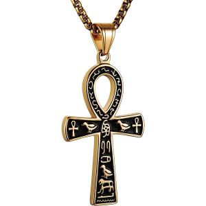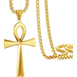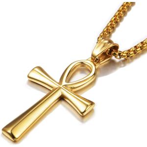 【並行輸入品】YL アンククロスネックレス メンズ ステンレススチール 十字架ペンダント 24インチ ロロチェーン 18Kゴールドジュエリー
