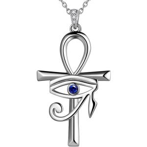【並行輸入品】AUDINCEED ホルスの目 ネックレス 925スターリングシルバー ブルージルコン付き アンククロスネックレス ネックレス 邪眼ネッ
