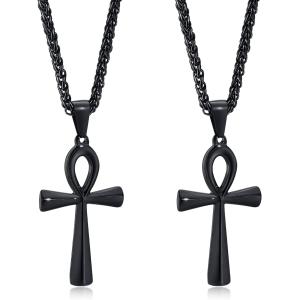 【並行輸入品】JUNOVUROS 2つの異なるサイズ 古代アンククロスペンダントネックレス 18~28インチのロロチェーン付き 男女兼用 男の子 女の