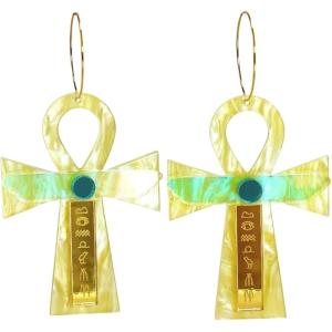 Egypt Ankh Cross Earrings エジプト アンク クロス 十字 ピアス セット オーストラリア(緑、金、黄色)