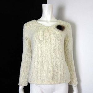 アンケート enquete ニット セーター ミンクファー ブローチ付 ざっくり ローゲージ ウール ストレッチ 長袖 M 9 オフ白 アイボリー