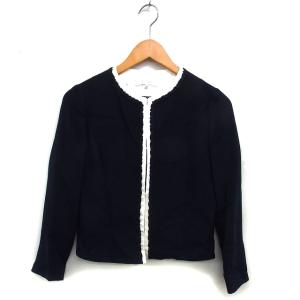 アンケート en quete ツイード ノーカラー ジャケット アウター 総裏地 クロップド コットン 綿 38 紺 ネイビー /NT34 レディース
