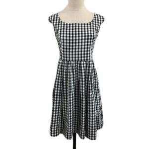 アンケート en quete ワンピース フレア ミニ ギンガムチェック ノースリーブ 36 黒 白 ブラック ホワイト レディース