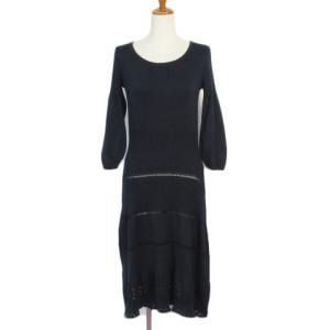 アンケート en quete ワンピース ニット フレア レース 透かし編み コットン 9 紺 ネイビー レディース