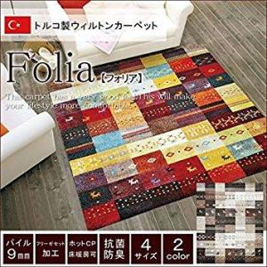 イケヒコ トルコ製 輸入ラグ ウィルトン織りカーペット ギャベ柄 『フォリア』 レッド 約133×190cm