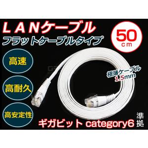LANケーブル CAT6 50cm ホワイト 白 フラットケーブル カテゴリ6 パソコン 有線 薄型