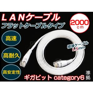 LANケーブル CAT6 20m ホワイト 白 フラットケーブル カテゴリ6 パソコン 有線 薄型