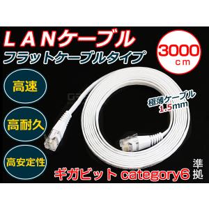 即決 LANケーブル 30m カテゴリ6 フラットケーブル スリム 白 配線 コード ハーネス 接続 カーアクセサリー