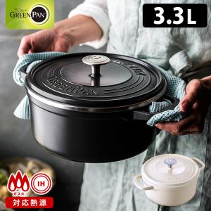 GREENPAN フェザーウェイト・ココット ラウンド22cm ポットホルダー2個付き
