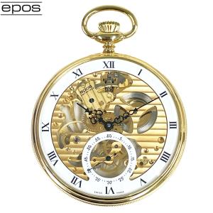 エポス 懐中時計 2121GPRN 裏スケルトン ローマン数字 ポケットウォッチ 手巻き シースルー チェーン付 新品 送料無料