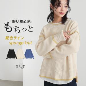 トップス ニット ニットトップス 長袖 レディース 配色 配色ニット 袖デザイン もちもち ラフ「メール便不可」「40」