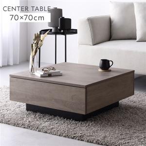 センターテーブル 正方形 約70×70cm グレージュ 引き出し 2杯付き ローテーブル リビング ダイニング インテリア家具