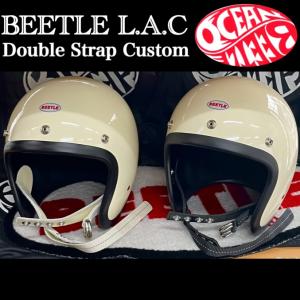 人気 オーシャンビートル ヘルメット L.A.C 廃盤 旧型 アイボリー改 LAC ダブルストラップ カスタムストラップ ジェットヘルメット ジェッペル OCEANBEETLE