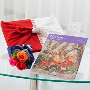 花とギフトのセット シャボンフラワーとカタログギフト(ミストラル/マリーゴールド)風呂敷包み