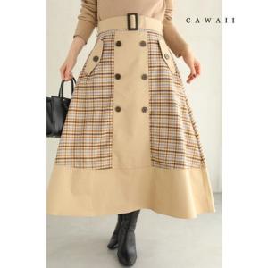 カワイイ CAWAII チェックが可愛いトレンチミディアムスカート (ベージュ)