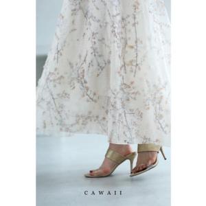 カワイイ CAWAII 優美な花びらが咲き浮かぶふんわりロングスカート (ベージュ)