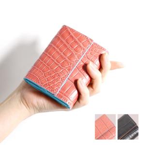 クロコダイル マット バイカラー ミニ財布 レディース コンパクト財布 キャッシュレス(No.06001421)