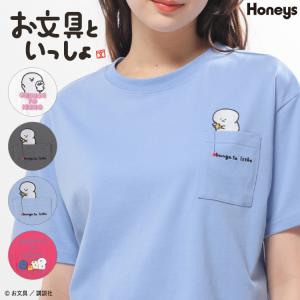 トップス Tシャツ 半袖Tシャツ カットソー 半袖 お文具といっしょ キャラクター 刺繍 プリント 綿混 レディース Honeys ハニーズ お文具といっしょ/Tシャツ
