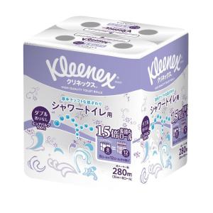 【64ロール】トイレットペーパー ダブル まとめ買い 長持ち クリネックス シャワートイレ用 無香料 (35m×8ロール×8パック)
