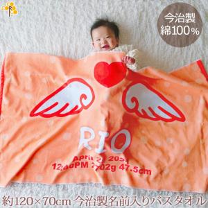 【約30営業日出荷】 出産祝い 名入れ 名前入り バスタオル 男の子 女の子 おしゃれ お七夜 100日祝い 今治 日本製 ブランケット プレゼント 天使の羽A