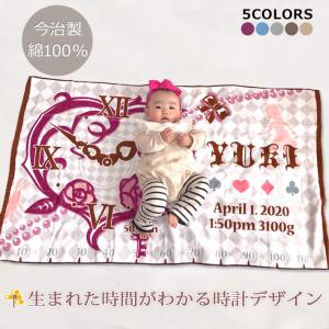 【約30営業日出荷】 出産祝い 名入れ 名前入り バスタオル 男の子 女の子 おしゃれ お七夜 100日祝い 今治 日本製 ブランケット プレゼント アリス時計