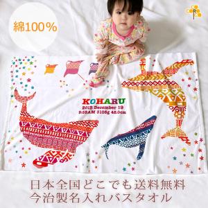 【約30営業日出荷】 出産祝い 名入れ 名前入り タオル バスタオル おしゃれ 今治 日本製 クジラの親子 KITCY くじら