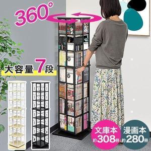 本棚 回転 7段 スリム 大容量 回転式本棚 幅40×40cm 高さ154cm 4面 360度回転 省スペース 収納 コミックラック タワーラック 棚 回転棚 1年保証 送料無料