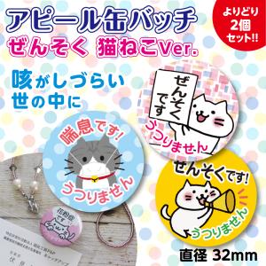 喘息バッジ 喘息バッチ 喘息 アピール コロナ対策 猫 かわいい バッジ 通勤 通学 買い物 よりどり2個 32mm