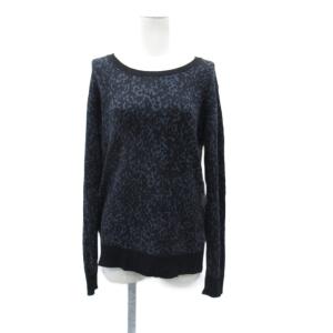 コントワーデコトニエ ニット セーター L 紺 ネイビー 黒 ブラック レオパード柄 ヒョウ柄 ラウンドネック 長袖 /HO16 ■GY58 レディース
