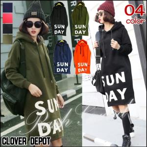 パーカー ワンピース 長袖 レディース ルームウェア おしゃれ カジュアル ゆったり ポケット プルオーバー 起毛 厚手 フード ロゴ ロングパーカー 黒 スリット