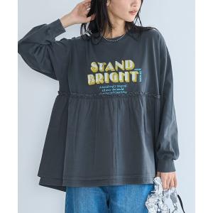 tシャツ 布帛ドッキングロゴプリントロンT レディース