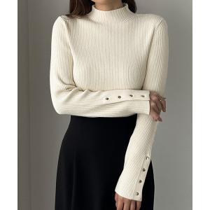 ニット セーター ゆったりなのに上品でキチンと見え。ミラノリブ袖先ゴールドボタンプルオーバー レディース