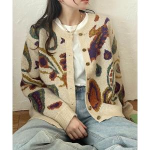 カーディガン 変形ゴールドボタン ジャガードニットカーディガン レディース