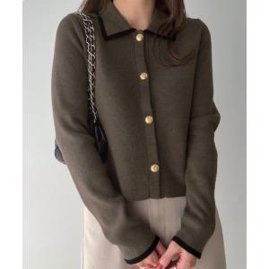 カーディガン ゴールドボタン配色ニットカーディガン レディース