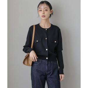 カーディガン 「S-LL」ゴールドボタンがアクセント ダブルフェイスニットカーディガン レディース