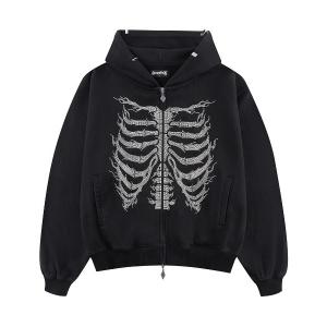 パーカー A'GEM/9 × .kom 「SUPPLIER/サプライヤー」 Fire Skeleton Rhinestone Zip Hoodie/フ
