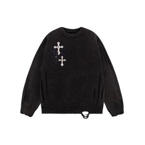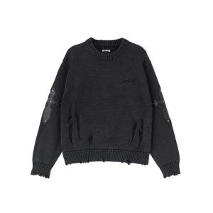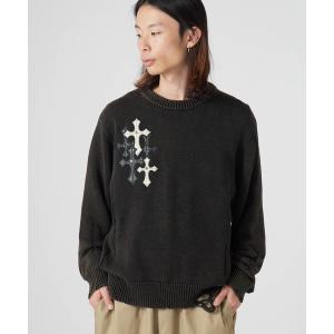 セーター ニット ニット|Distressed Multiple Cross Leather Patch Crew Knit|SUPPLIER メンズ