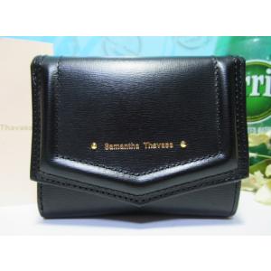 送料無料 サマンサタバサ ロゴ入 シンプル スマートレザー 牛革 三つ折り財布 折財布 ミニ財布 黒 新品 証明書付 ギフト包装無料 開運 金運up ユニセックス