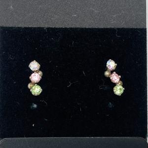 シルバーピアス ジルコニア CZ ピンク 黄緑 3連 1ペア シルバー925製 シルバーアクセサリー スタッドピアス (3)