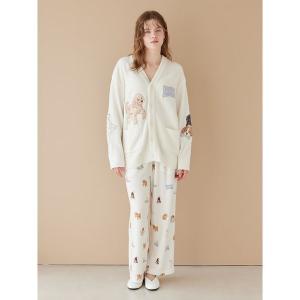 パジャマ ルームウェア 「ONLINE限定」「UNISEX」エアリーモコプレイフルDOGジャガードプルオーバー&ボーダーロングパンツセット レディース